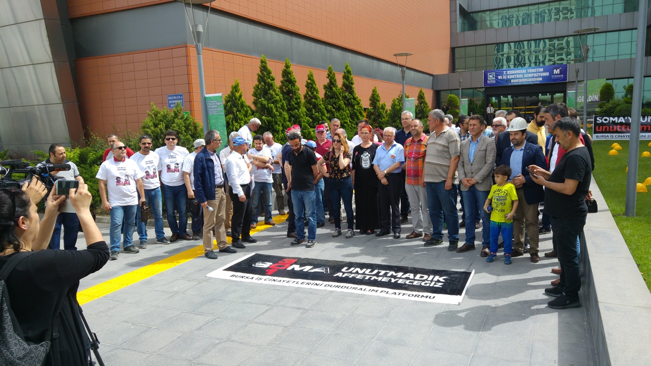 13 Mayıs 2017 tarihinde, TMMOB Bursa İl Koordinasyon Kurulu ve Bursa İş Cinayetlerini Durduralım Platformunu tarafından BAOB Yerleşkesi Özgürlük ve Demokrasi Meydanında düzenlenen " SOMA! UNUTMADIK, UNUTMAYACAĞIZ. " Anma ve basın açıklamasına katılım sağlanmıştır.
