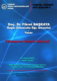 Odamız tarafından Perşembe günleri düzenlenen Güncel Siyaset Söyleşilerinin altıncısı 21 Ocak Perşembe günü, Odamız Merkez Yücel Özel Toplantı Salonunda, Özgür Üniversite Öğretim Görevlisi ve aynı zamanda yazar Doç. Dr. Fikret BAŞKAYAnın "Yüzleşme: Resmi İdeoloji" konulu söyleşisi ile gerçekleşmiştir.