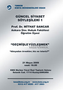 Odamız tarafından Perşembe günleri düzenlenecek olan Güncel Siyaset Söyleşilerinin ilki 21 Mayıs Perşembe günü, Ankara Üniversitesi Hukuk Fakültesi Öğretim Üyesi Prof. Dr. Mithat SANCAR‘ın "Geçmişle Yüzleşmek" konulu söyleşisi ile başlayacaktır.