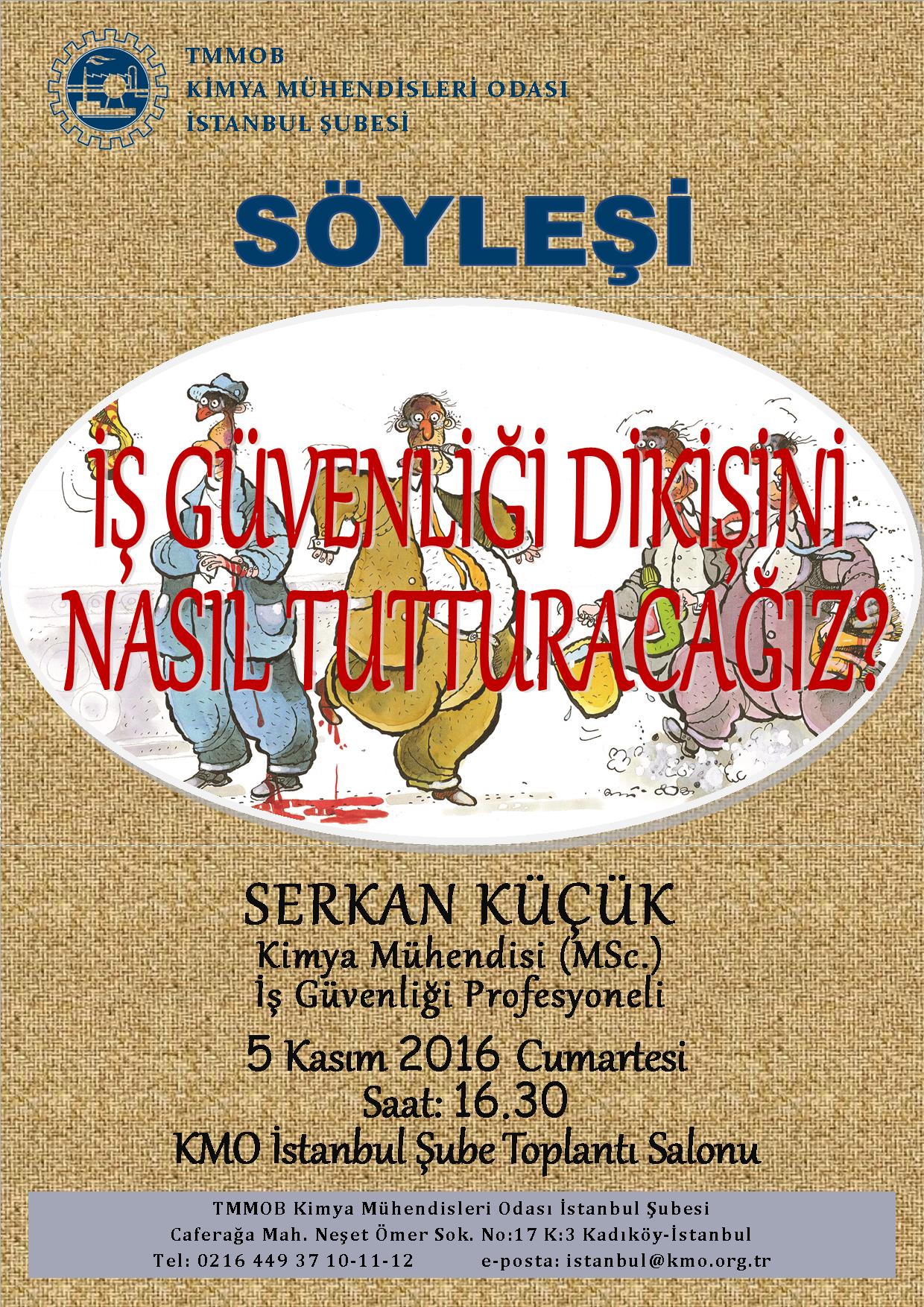 5 Kasım 2016 Cumartesi günü şubemizde `İş Güvenliği Dikişini Nasıl Tutturacağız` konulu söyleşi gerçekleşecektir.