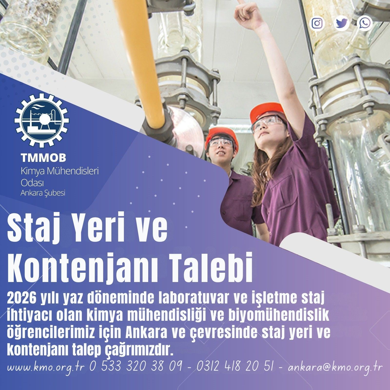 TMMOB KMO Ankara Şubesi olarak mesleki gelişimin en önemli aşamalarından biri olan staj süreçlerinde öğrencilerimizin nitelikli deneyim kazanmasını desteklemeyi önemsiyoruz.