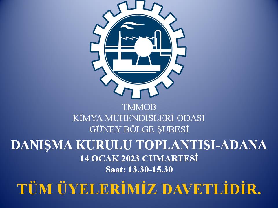 14 Ocak 2023 Cumartesi günü 13.30-15.30 saatleri arasında şubemiz toplantı salonunda Güney Bölge Şubemizin 16. Dönem II. Danışma Kurulu Toplantısı yapılacaktır.