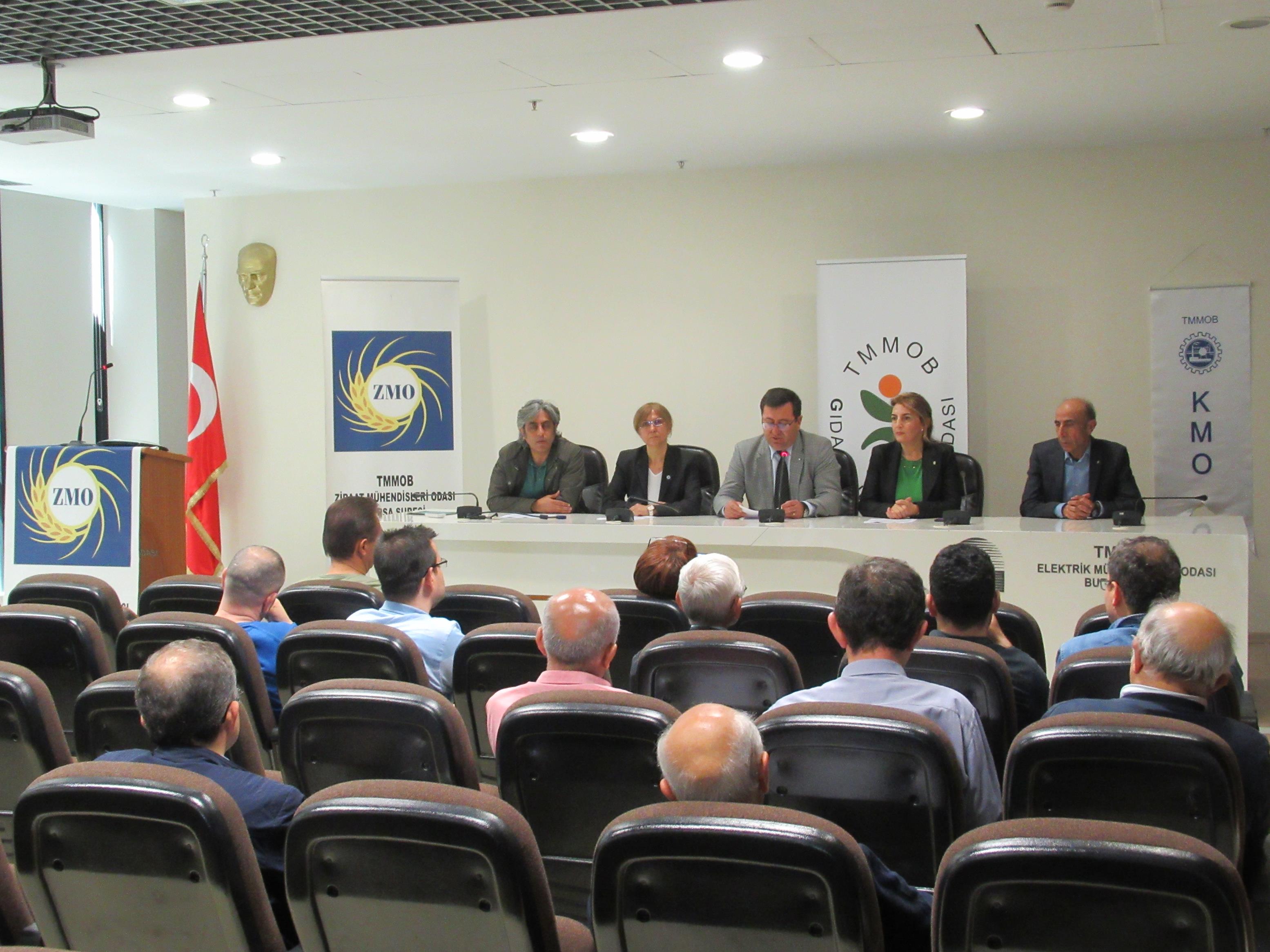 Bu kapsamda 29 Nisan 2019 tarihinde BAOB Yerleşkesinde TMMOB Elektrik Mühendisleri Odası Konferans Salonunda TMMOB Ziraat Mühendisleri Odası Bursa Şube Başkanımız Doç. Dr. Erkan YASLIOĞLU, TMMOB Gıda Mühendisleri Odası Bursa Şube Başkanı Lale YILDIZ, TMMOB Kimya Mühendisleri Odası Bursa Şube Başkanı Rengin DEMİRÖZ, Tarım Orkam-Sen Bursa Şube Başkanı Fikret GİZİR ve Türkiye Ziraatçılar Derneği Bursa Şube Başkanı Veysi EREZ`in katılımı ile ortak basın açıklaması düzenlendi.