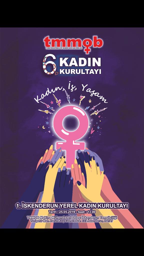 25 Mayıs 2019 saat 13.30`da TMMOB İskenderun İl Koordinasyon Kurulu Kadın Çalışma Grubu tarafından Makina Mühendisleri Odası İskenderun Temsilciliği`nde düzenlenen 1. İskenderun Yerel Kadın Kurultayı`na katılım sağlandı.