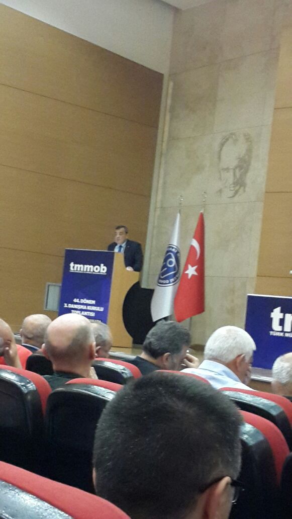 "Referandum süreci ve sonuçlarının değerlendirilmesi, güncel gelişmeler ve TMMOB" gündemiyle toplanan III. Danışma Kurulu TMMOB Yönetim Kurulu Başkanı Emin Koramazın açılış konuşması ile başladı. Koramaz yaptığı konuşmada referandum süreci ve sonrasını değerlendirerek bu sürece ilişkin TMMOB yaklaşımından bahsetti. Daha sonra TMMOB Genel Sekreteri Dersim Gül Bu süreçte yapılan çalışmaları özetledi. Oda Başkanımız Dr. Ali Uğurlu da yaptığı konuşmada süreci kısaca değerlendirdikten sonra yaşanılanların 1980 yılından bu yana devam eden neo liberal sistemin ve politikalarının bir sonucu olduğundan bahsetti. Daha sonra Bilim Sanayi ve Teknoloji Bakanlığının Odamızı denetleme isteğini yargıya taşıdığından bahsederek odamız hakkında açılan davaya ilişkin danışma kurulu üyelerine bilgi verdi.