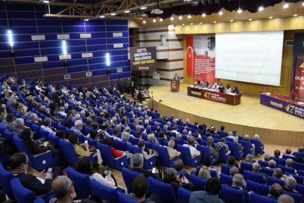Gezi Direnişi hakkında gerçekleştirilen sinevizyon gösteriminin ardından TMMOB Yönetim Kurulu Başkanı Emin Koramaz, genel kurulun açılış konuşmasını yaptı. Koramaz konuşmasına cezaevinde bulunan Mücella Yapıcı, Tayfun Kahraman, Can Atalay ve tüm Gezi Davası tutuklularını selamlayarak başladı.