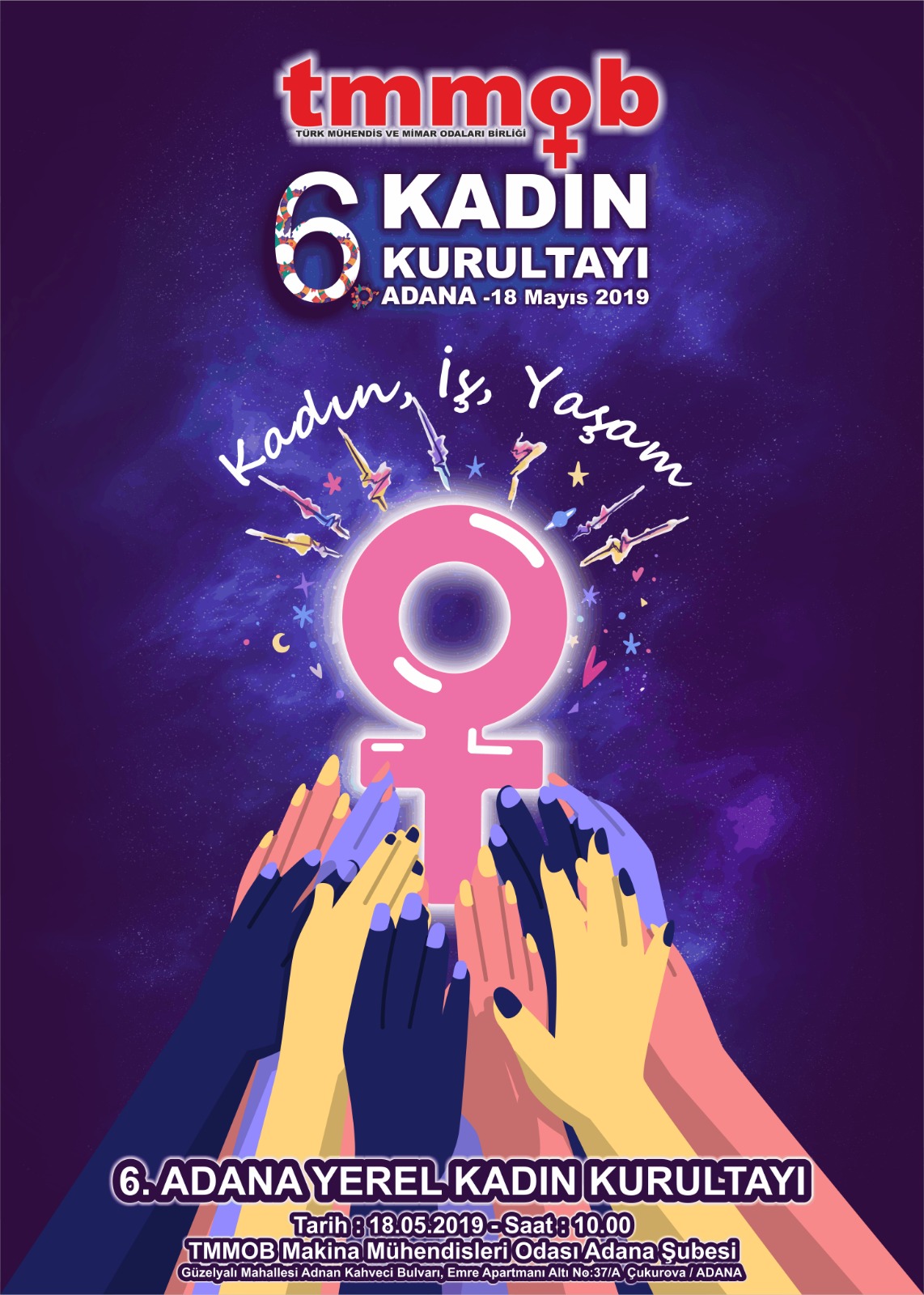 18 Mayıs 2019 saat 10.00`da TMMOB Adana İl Koordinasyon Kurulu Kadın Çalışma Grubu tarafından Makina Mühendisleri Odası Adana Şubesi`nde düzenlenen 6. Adana Yerel Kadın Kurultayı`na katılım sağlandı.
