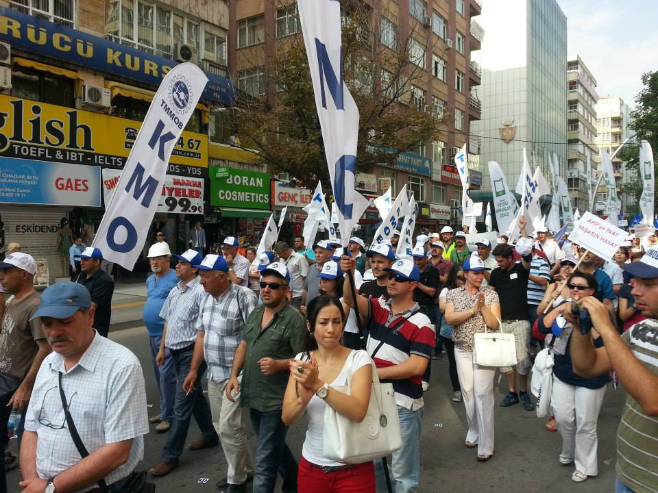 Selanik Caddesi‘nde TMMOB binası önünde toplanan mühendis, mimar ve şehir plancıları, Meşrutiyet Caddesi üzerinden, "AKP elini mesleğimden çek", "Gün gelecek, devran dönecek, AKP halka hesap verecek", "Diktatör istifa", "Örgüt Arama, TMMOB Burada", "TMMOB Yürüyor, Mücadele Sürüyor" sloganları eşliğinde Güvenpark‘a yürüdü.