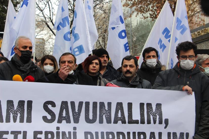 Koramaz`ın konuşmasının ardından açıklamayı TMMOB Ankara İKK Sekreteri Özgür Topçu okudu. Topçu, " Emeğe ve emekçiye düşman olan bu sistem sermayenin sınırsız sömürü düzenin bir sonucudur. Taşeronlaştırma, özelleştirme, sendikasızlaştırma, denetimsizlik, esnek istihdam politikaları, kayıt dışı çalışmaya izin veren politikalar ve bunun sonucu oluşturulan mevzuat ile sorunlu bir sistem üretmiştir. İş cinayetlerini seyrederek olan biteni kadere, fıtrata bağlayan açıklamalar yapan siyasi iktidar bu sistemi korumak üzere yoğun çaba sarf etmektedir," dedi.