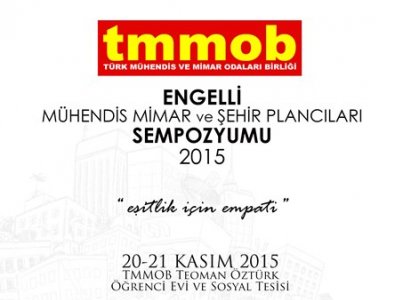 20-21 Kasım 2015te Ankarada düzenleyeceğimiz TMMOB Engelli Mühendis Mimar ve Şehir Plancıları Sempozyumu "EŞİTLİK İÇİN EMPATİ" sloganıyla TMMOB Teoman Öztürk Öğrenci Evi ve Sosyal Tesisinde gerçekleşecektir.