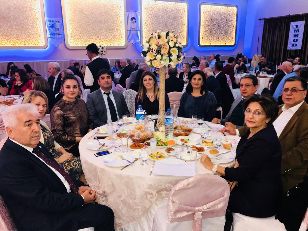 15.12.2018 tarihinde TMMOB İskenderun İlçe Koordinasyon Kurulu tarafından İskenderun da düzenlenen yemeğe, Şube Başkanımız Ümit Türkmen, Şube II. Başkanımız Durmuş Ali Kaya, Şube Yönetim Kurulu Üyemiz İrem Türemiş ve Hatay İl Temsilcimiz Hasan Emir katıldılar. Gecede mesleğinde 30 yıl ve üzerini tamamlayan üyelerimize plaket verildi.