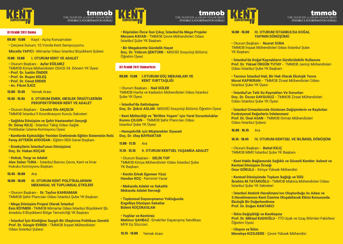 TMMOB IV. İstanbul Kent Sempozyumunda;