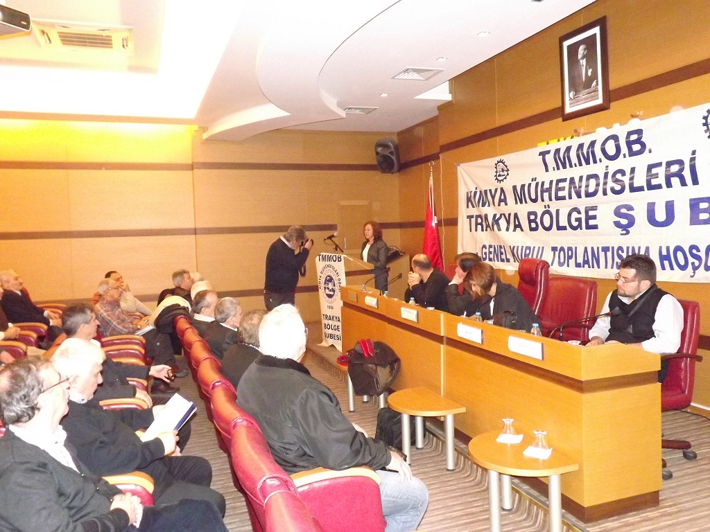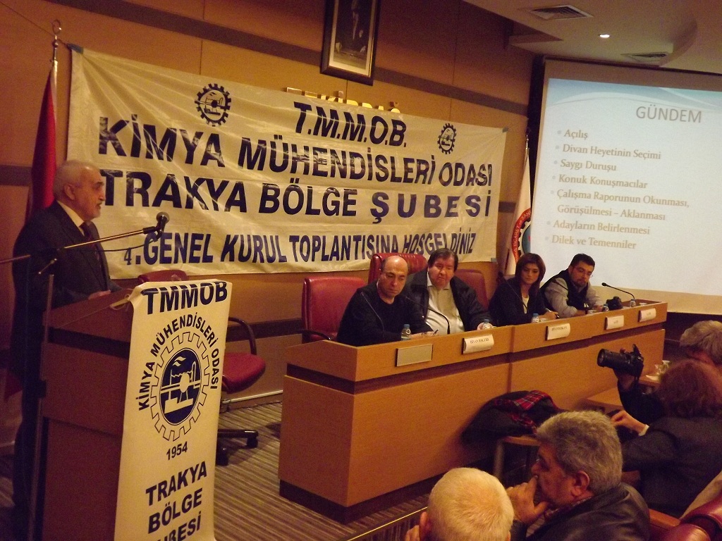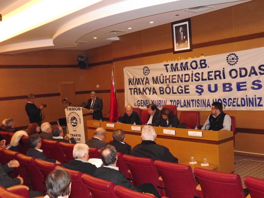 Saygı duruşu ve istiklal marşından sonra Divan Başkanı sözü Sn. M. Nurten AKBULUT`a ve Sn. Ramazan TÜMEN`e verdi. M. Nurten AKBULUT ve Ramazan TÜMEN Kimya Mühendisleri Odası`nın günümüzdeki konumundan ve meslektaşlarımızın yaşadığı güncel sorunlardan bahsetti. Divan Başkanı daha sonra gündem gereği çalışma raporunu sunmak üzere Sn. Göksel TOSUN`A söz verdi. Göksel Bey 3. Dönem Çalışma, Maliye Raporları`nı ve 2014 - 2015 Dönemi Tahmini Bütçesi`ni sundu. Divan Başkanı Göksel Bey`in sunumu ile ilgili katılımcılara yorumları olup olmadığını sordu. Herhangi bir yorum gelmediğinden 3. Dönem Çalışma Raporu aklandı. Divan Başkanı 2014 - 2015 Tahmini Bütçe oylamaya sundu ve oybirliği ile kabul edildi. Divan Başkanı 4 imza (S.Zeki DEĞİRMENCİ, Besim GÜRLER, Süleyman MİRAN, Göksel TOSUN) ile önerilen Yeni Dönem Asıl ve Yedek Yönetim Kurul Üyeleri ile KMO Genel Merkez Delege Asıl ve Yedek Listeleri`ni okuyarak katılımcıların oylamasına sundu ve oybirliği ile kabul edildi. S.Zeki DEĞİRMENCİ, Muzaffer KIRCI, Süleyman MİRAN, Naci AKYAZI, Ramazan TÜMEN, Azmi Abdullah DOĞAN, Besim GÜRLER ve M. Nurten AKBULUT dilek ve temenni olarak gelecek döneme ait görüşlerini belirtti. Divan Başkanı Yeni Yönetim adaylarını tanıtması için Sn. S. Zeki DEĞİRMENCİ`ye söz verdi. Yeni Yönetim Kurulu adayları tanıtıldıktan sonra Genel Kurul kapatıldı.