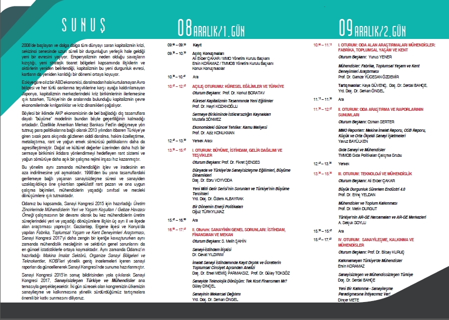15.45 – 17.45 IV. OTURUM: SANAYİLEŞME, KALKINMA VE MÜHENDİSLER