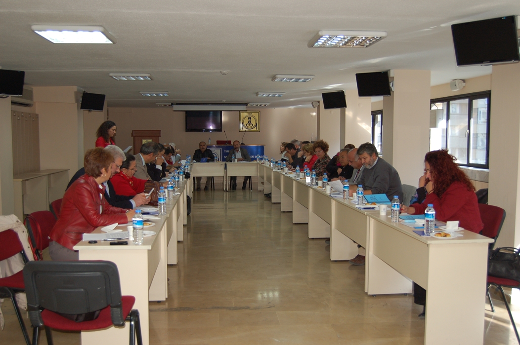 TMMOB Yönetim Kurulu ve oda başkanları, odalar üzerinde bakanlıkların vesayet denetimi konusuyla ilgili olarak 12 Kasım 2013 tarihinde MMO Suat Sezai Gürü Salonu'nda bir araya geldiler.