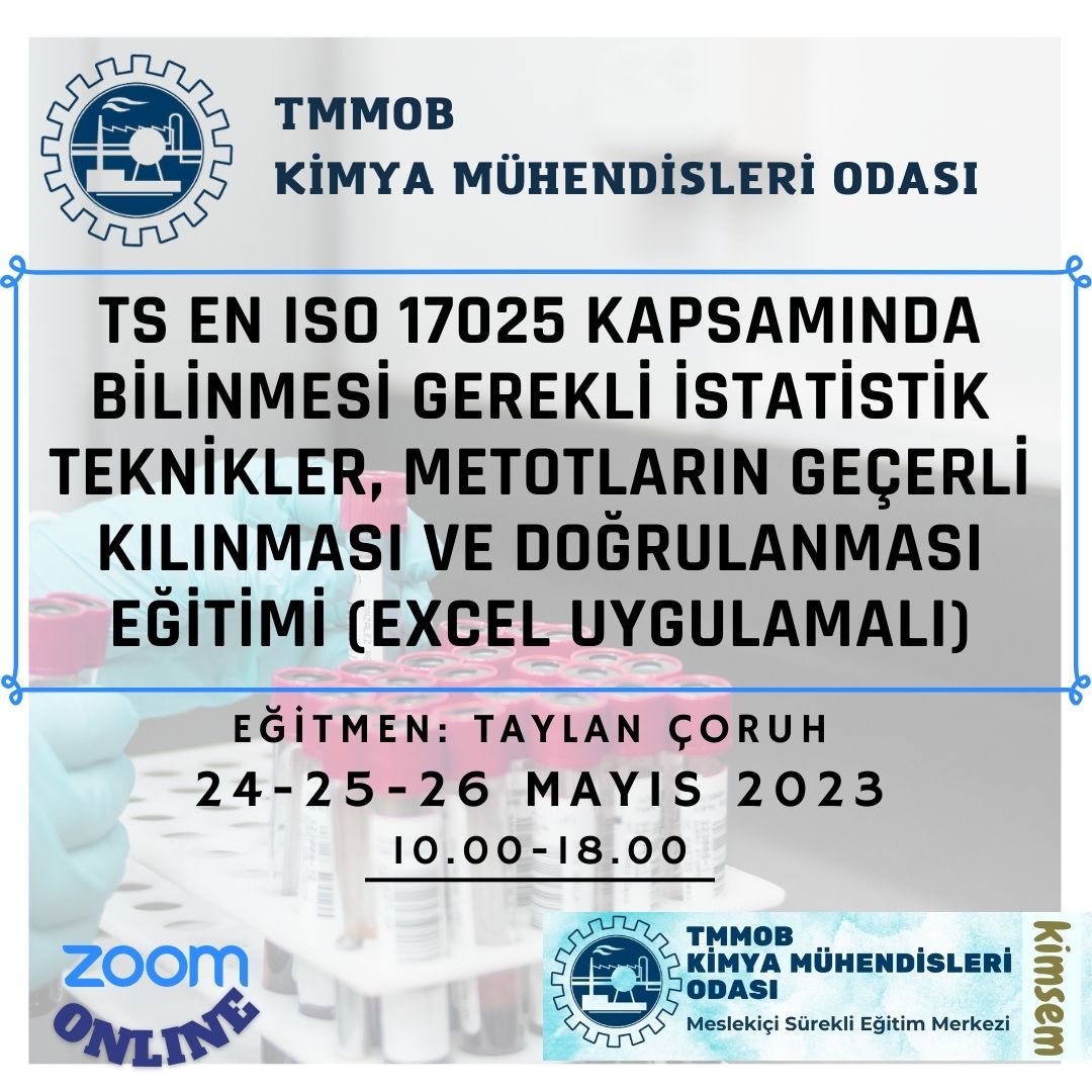 Odamız tarafından 24-25-26 Mayıs 2023 tarihlerinde saat 10.00-18.00 saatleri arasında "TS EN ISO 17025 Kapsamında Bilinmesi Gerekli İstatistik Teknikler, Metotların Geçerli Kılınması ve Doğrulanması Eğitimi (Excel Uygulamalı)" zoom programı üzerinden online olarak düzenlenecektir. Eğitim ile ilgili detaylı bilgi aşağıda olup eğitime katılmak isteyenlerin, ekteki/dosyalar kısmındaki başvuru formunu doldurup istenen belgeler ile birlikte 20 Mayıs 2023 tarihine kadar, guney@kmo.org.tr adresine göndermelerini rica ederiz.Saygılarımızla