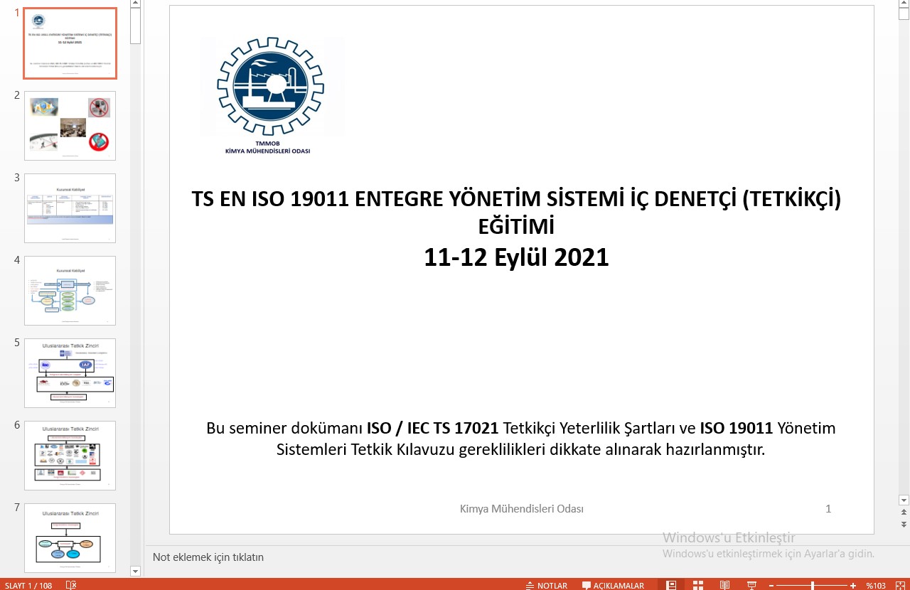 Düzenlediğimiz eğitimin içeriği ISO 19011 ve ISO 17021 Yönetim Sistemleri Tetkik Kılavuzu ve Şartları dikkate alınarak hazırlanmıştır.