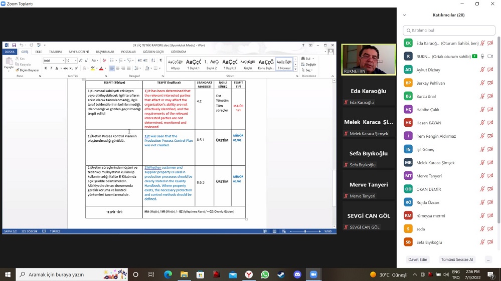 Kurumun, yerine getirmekle yükümlü olduğu şartları karşılanma derecesini objektif olarak değerlendirmek için yapılan sistematik, tarafsız ve dokümante edilmiş sürece TETKİK denir.