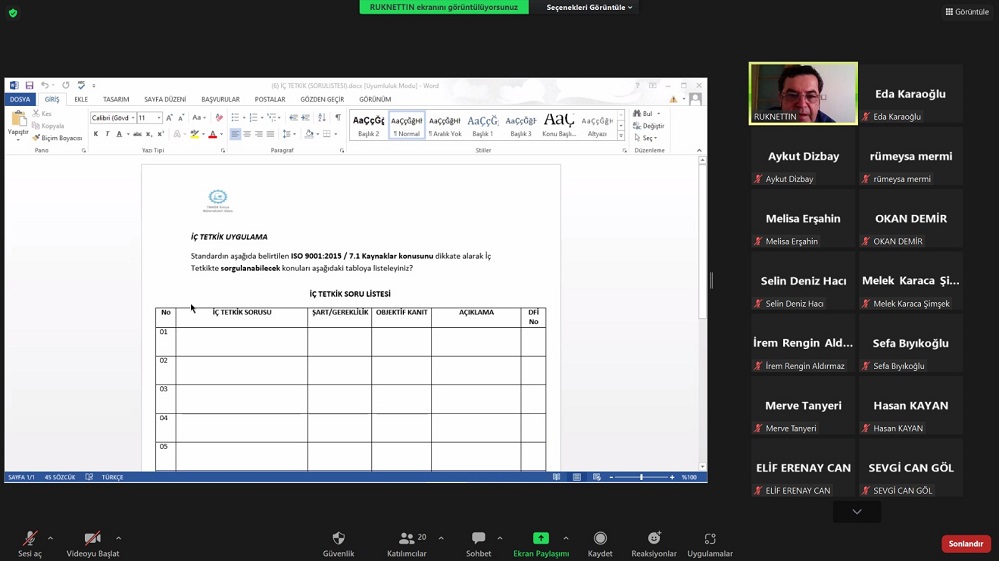 Değerli bilgi birikim ve tecrübeleriyle eğitimimizin sunumu yapan Entegre Yönetim Sistemleri Uluslararası Başdenetçi Kimya Mühendisi Sayın Rüknettin BIÇAKLI`ya teşekkür ederiz.