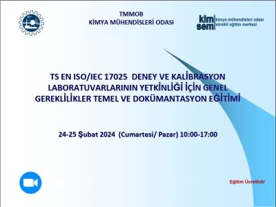 | 24-25 Şubat 2024 tarihlerinde, Kimya Mühendisleri Odası Eskişehir Bölge Temsilciliğimiz koordinatörlüğünde, TS EN ISO/IEC 17025 Deney ve Kalibrasyon Laboratuvarlarının Yetkinliği için Genel Gereklilikler Temel ve Dokümantasyon Eğitimi (ZOOM) düzenlenecektir. Eğitimle ilgili bilgiler aşağıda olup, eğitime katılmak isteyenlerin, başvuru formunu doldurarak bursa@kmo.org.tr adresine göndermelerini rica ederiz. Saygılarımızla, TMMOB Kimya Mühendisleri Odası Bursa Şubesi | EĞİTİMİN ADI | TS EN ISO/IEC 17025 DENEY VE KALİBRASYON LABORATUVARLARININ YETKİNLİĞİ İÇİN GENEL GEREKLİLİKLER TEMEL VE DOKÜMANTASYON EĞİTİMİ (ONLİNE) | | EĞİTİMİN YERİ | ZOOM /ONLİNE | | EĞİTİM TARİHİ VE SAATİ | 24-25 ŞUBAT 2024 - 10:00-17:00 | | SON BAŞVURU TARİHİ | 20 ŞUBAT 2024, Salı | | EĞİTMEN | Taylan ÇORUH | | KATILIMCILARDA ARANACAK ŞARTLAR (EĞİTİME KİMLER KATILMALI) | *KMO üyeleri ya da öğrenci üyeleri *TMMOB`ye bağlı diğer Oda üyeleri *Kimyagerler veya Laboratuvar Çalışanları | | EĞİTİMİN AMACI/ İÇERİĞİ | TS EN ISO/IEC 17025 standardının madde bazında incelenmesi, akreditasyon için yapılması gerekli çalışmaların açıklanması. | | EĞİTİM ÜCRETİ | · TMMOB`a bağlı Oda üyeleri için 2750,00 TL · KMO öğrenci üyelerine 1200,00 TL · İşsiz Üyelere 2000,00 TL · Diğer katılımcılar 3000,00 TL Eğitim ücretinin yatırılacağı hesap bilgileri: Hesap Adı: TMMOB Kimya Mühendisleri Odası IBAN: TR38 0006 4000 0012 2010 9003 59 (İş Bankası) Odamız KDV ve kurumlar vergisinden muaftır. | | EĞİTİM BAŞVURU BELGELERİ | · Mühendisler için: Kimlik fotokopisi, TMMOB oda üyelik belgesi ve diploma fotokopisi (Oda üyelik aidat borcu bulunmamalıdır) · Diğer katılımcılar için: Nüfus cüzdanı fotokopisi ve diploma fotokopisi, · Öğrenciler için: Öğrenci Belgesi | | NOT | Eğitim notları, eğitimden önce katılımcılara pdf olarak e-posta ile gönderilecektir. Eğitim sonunda katılımcılara "EĞİTİM SERTİFİKASI" verilecektir. | | ÖN KAYIT | Ön kayıt için ekteki başvuru formunu bursa@kmo.org.tr adresine mail yolu ile gönderiniz. | | BİLGİ İLETİŞİM | 0224 451 66 82-533 771 34 67 | Notlar: 1) Eğitimler Zoom programı üzerinden gerçekleşecek olup Zoom programını bilgisayarınıza indirmek için https://zoom.us/download adresine girdiğinizde download butonuna tıklayarak program kurulum dosyasını indirebilir, daha sonra inen dosyanın kurulumunu yaparak bilgisayara kurabilirsiniz. 2) Eğitim başvurusu onaylanan kişilere eğitime giriş linki e-posta ve sms yoluyla eğitimden önce gönderilecektir. |