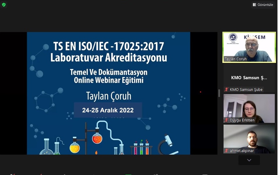 24-25 ARALIK 2022 tarihlerinde TS EN ISO/IEC 17025 Deney ve Kalibrasyon Laboratuvarlarının Yetkinliği için Genel Gereklilikler Temel ve Dokümantasyon Eğitimi (ZOOM) DÜZENLENDİ.