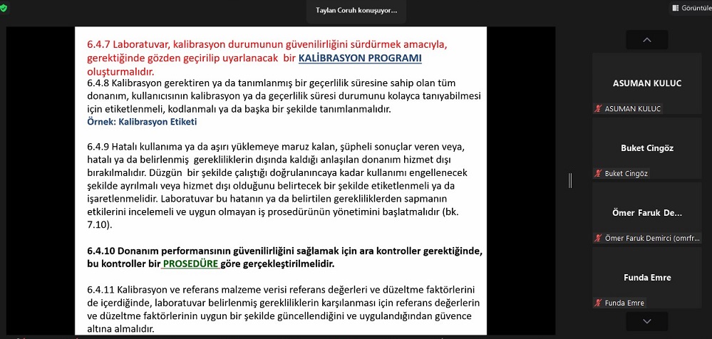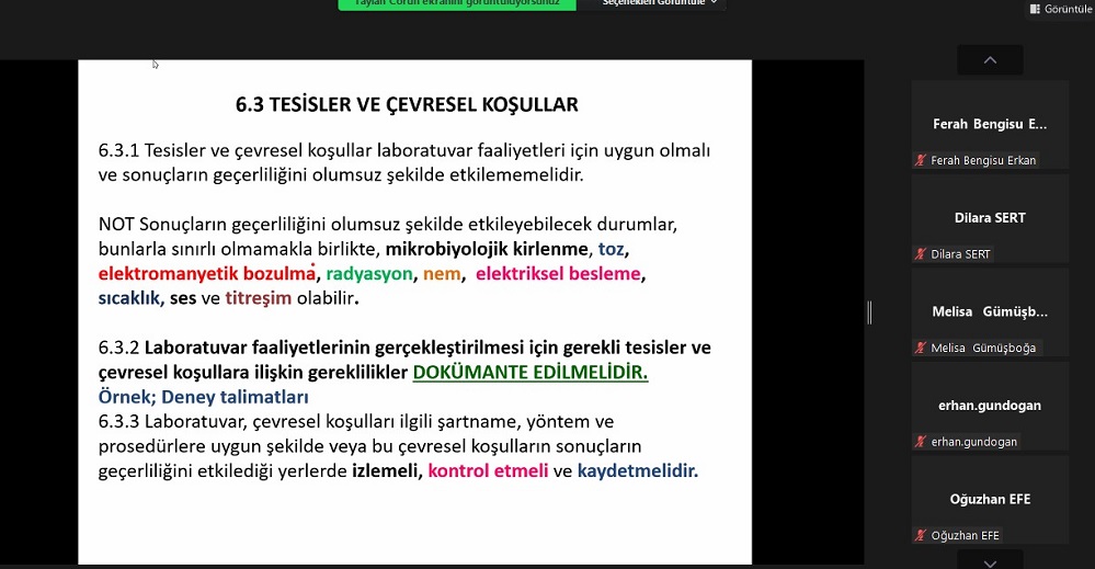 TS EN ISO/IEC 17025 DENEY VE KALİBRASYON LABORATUVARLARININ YETKİNLİĞİ İÇİN GENEL GEREKLİLİKLER TEMEL VE DOKÜMANTASYON EĞİTİMİ (ZOOM) TAMAMLANDI.