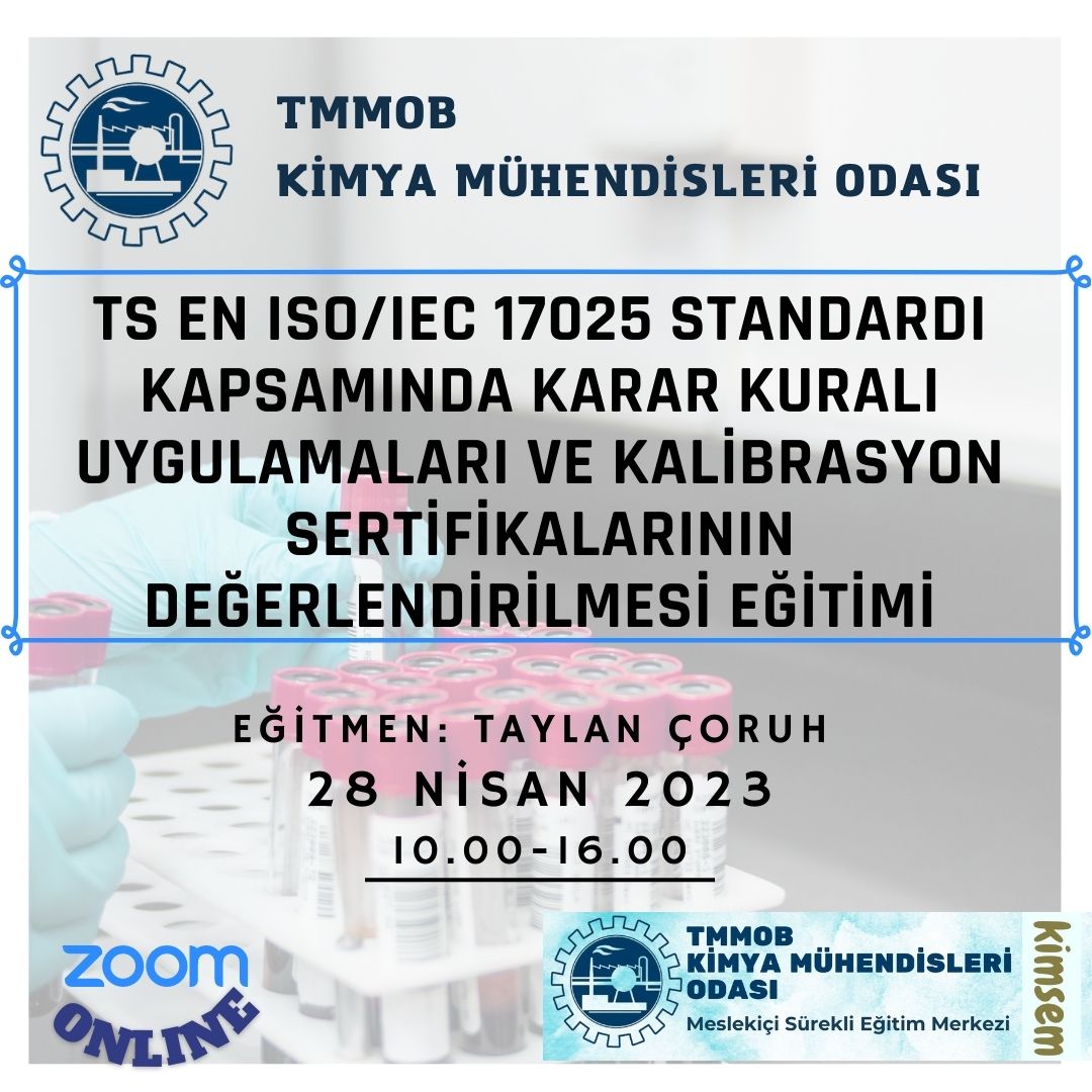 TS EN ISO/IEC 17025 STANDARDI KAPSAMINDA KARAR KURALI UYGULAMALARI VE KALİBRASYON SERTİFİKALARININ DEĞERLENDİRİLMESİ EĞİTİMİ