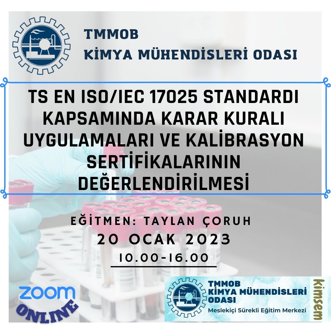 TS EN ISO/IEC 17025 STANDARDI KAPSAMINDA KARAR KURALI UYGULAMALARI VE KALİBRASYON SERTİFİKALARININ DEĞERLENDİRİLMESİ EĞİTİMİ-ONLİNE