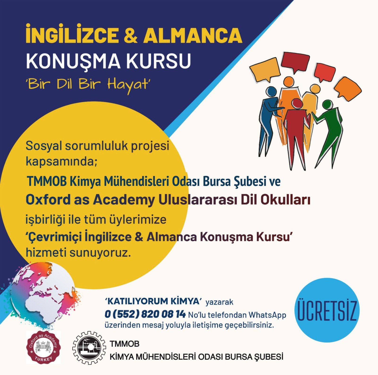Şubemiz ile Oxford as Academy Uluslararası Dil Okulları arasında, üyelerimiz ve birinci derece yakınları için ÜCRETSİZ İngilizce&Almanca Konuşma Kursu gerçekleştirmek üzere protokol imzalanmıştır