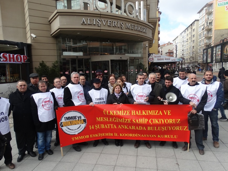 AKP diktası ve gericiliğine, ülkemizin talanına, halkımızın sömürülmesine, mesleklerimizin niteliksizleştirilmesine, haklarımızın gasp edilmesine, Odalarımızın ve Birliğimiz TMMOB`nin işlevsizleştirilmesine izin vermeyeceğiz!