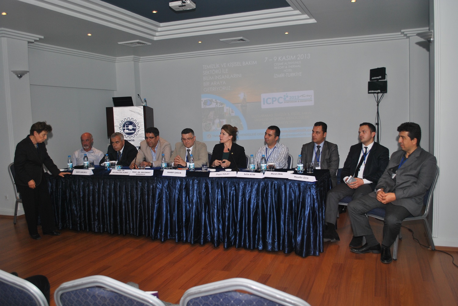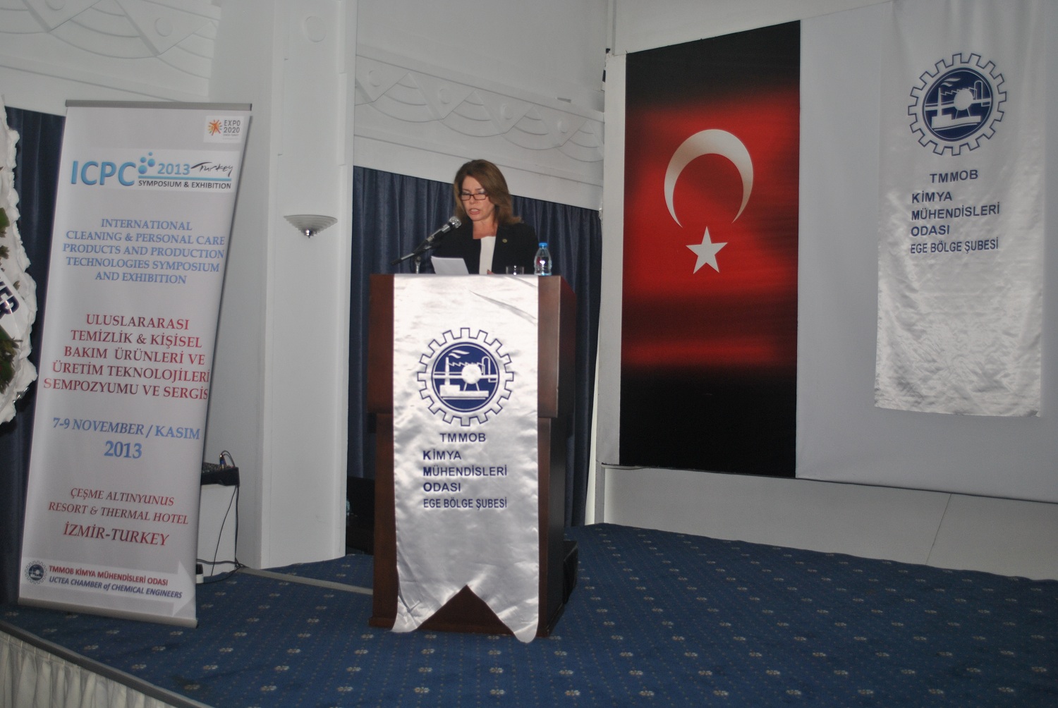 İzmir Çeşmede gerçekleştirilen Uluslararası Temizlik ve Kişsel Bakım Ürünleri ve Üretim Teknolojileri Sempozyumu ve Sergisinde Oda Başkanımız Mehmet Besleme, Ege Bölge Şube Başkanımız Saadet Çağlın, İKMİB adına Aysu Benlioğlu, Karaburun Belediye Başkanı Serdar Yasa, Kozmetik ve Temizlik Sanayi Derneği Yönetim Kurulu Başkanı Vuranel Okay birer konuşma yapmıştır.