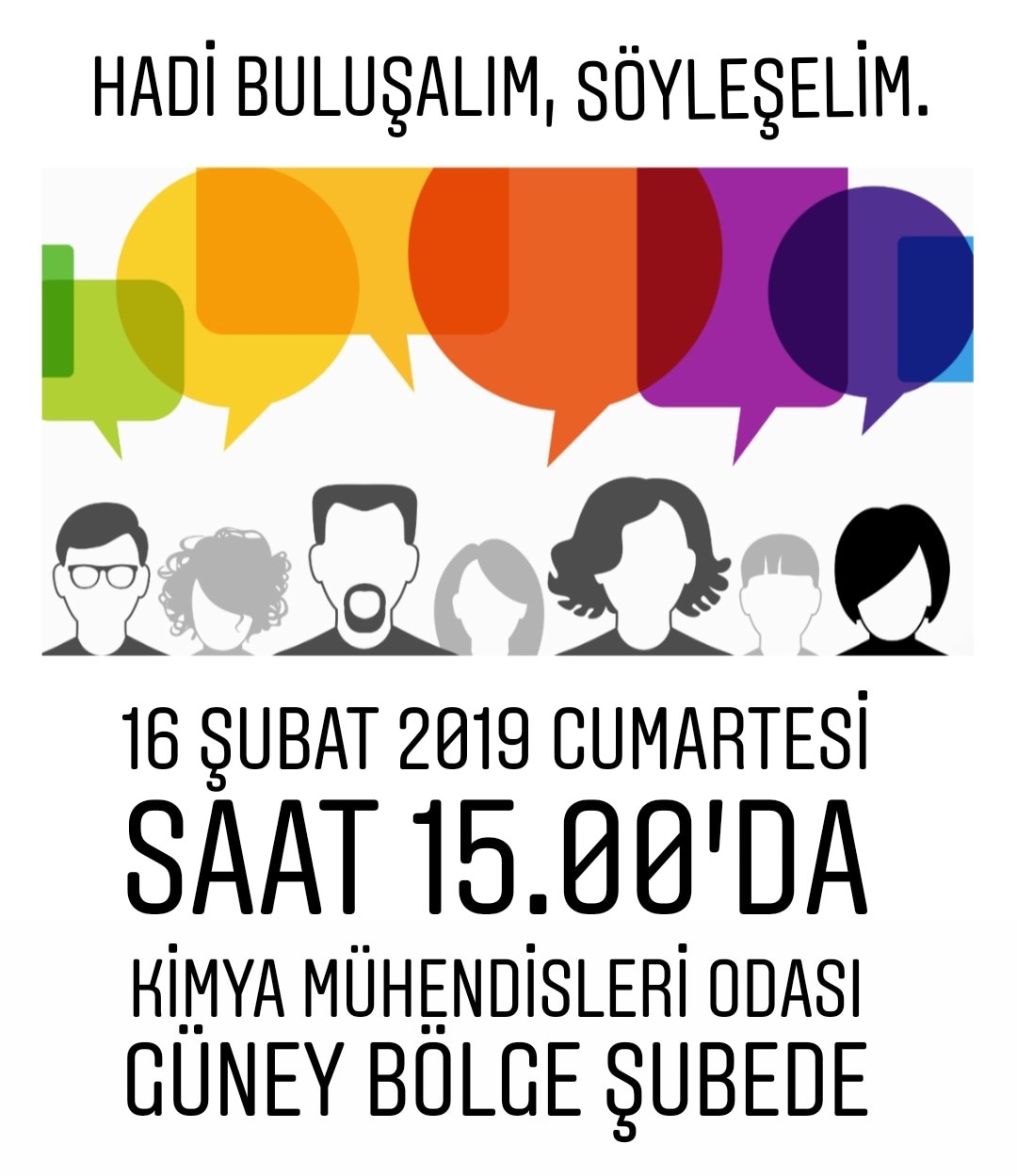 16.02.2019 Cumartesi günü saat 15.00 de çay-kahve eşliğinde; odamıza, mesleğimize ve hayata dair görüş alışverişinde bulunmak için siz değerli üyelerimizle şubemizde buluşmak istiyoruz.