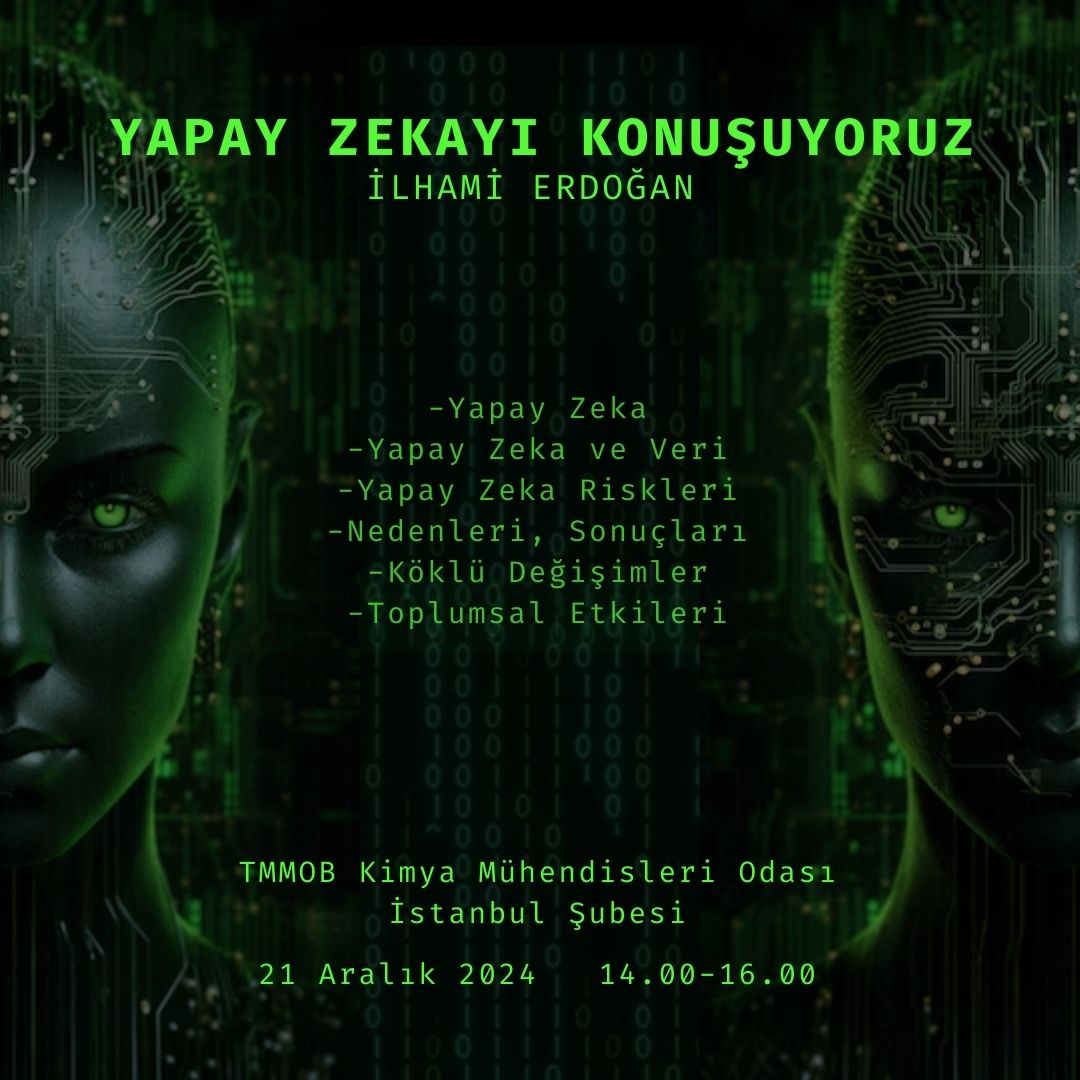 Odamız tarafından 21 Aralık Cumartesi günü saat 14:00-16:00'da İlhami Erdoğan ile Yapay Zekayı Konuşuyoruz' söyleşimiz şubemizin eğitim salonunda gerçekleşecektir.