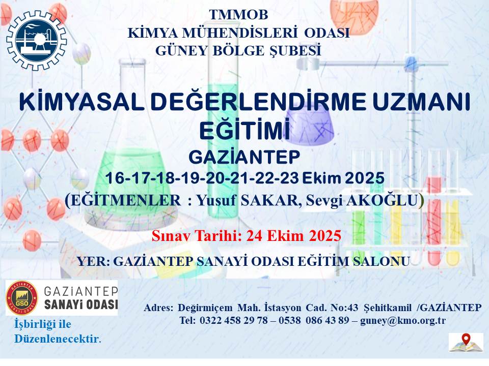 KİMYASAL DEĞERLENDİRME UZMANI (KDU) EĞİTİMİ VE SINAVI - GAZİANTEP |