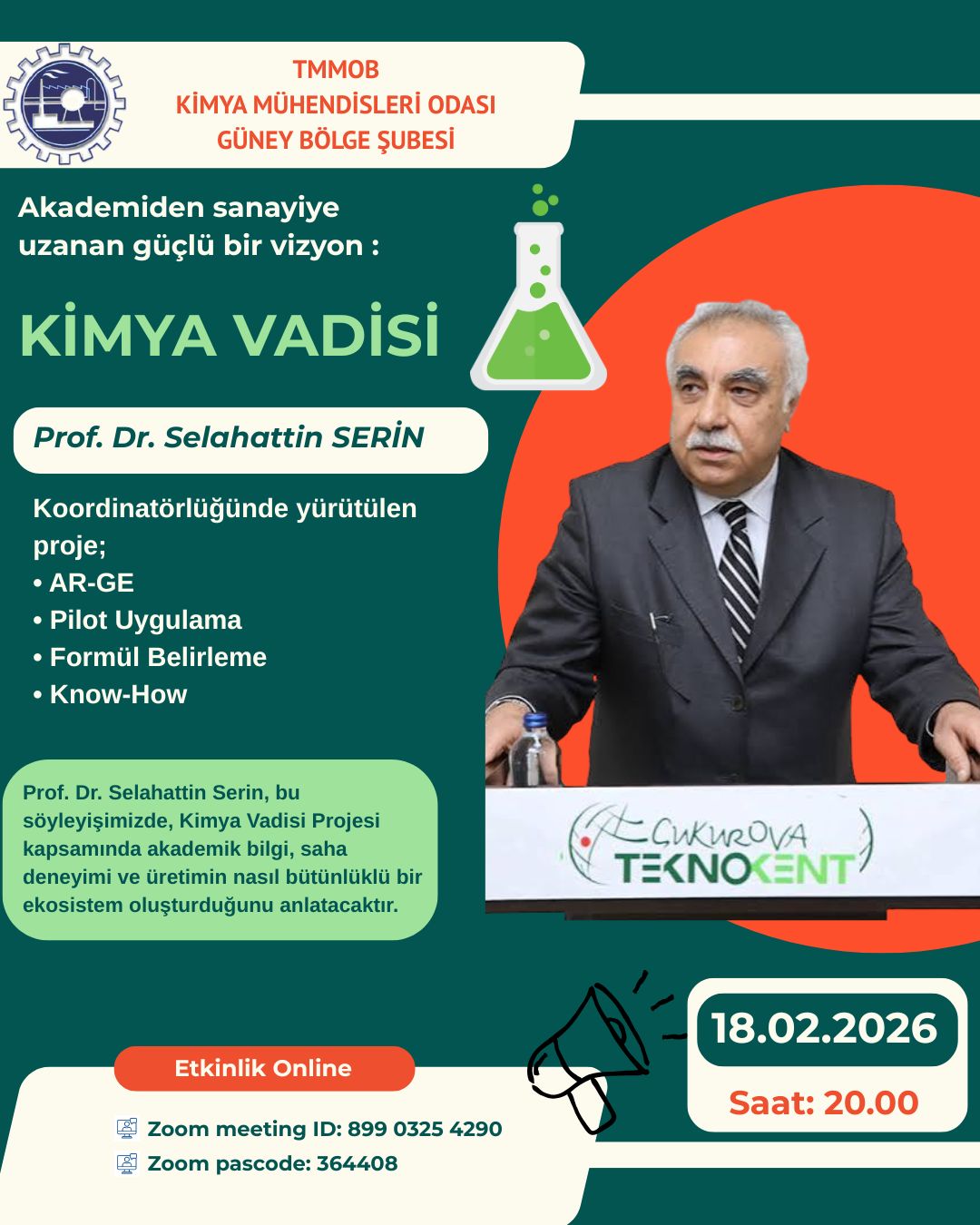 Akademiden sanayiye uzanan güçlü bir vizyon : KİMYA VADİSİ Prof. Dr. Selahattin Serin Koordinatörlüğünde yürütülen proje; * AR-GE * Pilot Uygulama * Formül Belirleme * Know-How Prof. Dr. Selahattin Serin, bu söyleyişimizde, Kimya Vadisi Projesi kapsamında akademik bilgi, saha deneyimi ve üretimin nasıl bütünlüklü bir ekosistem oluşturduğunu anlatacaktır.