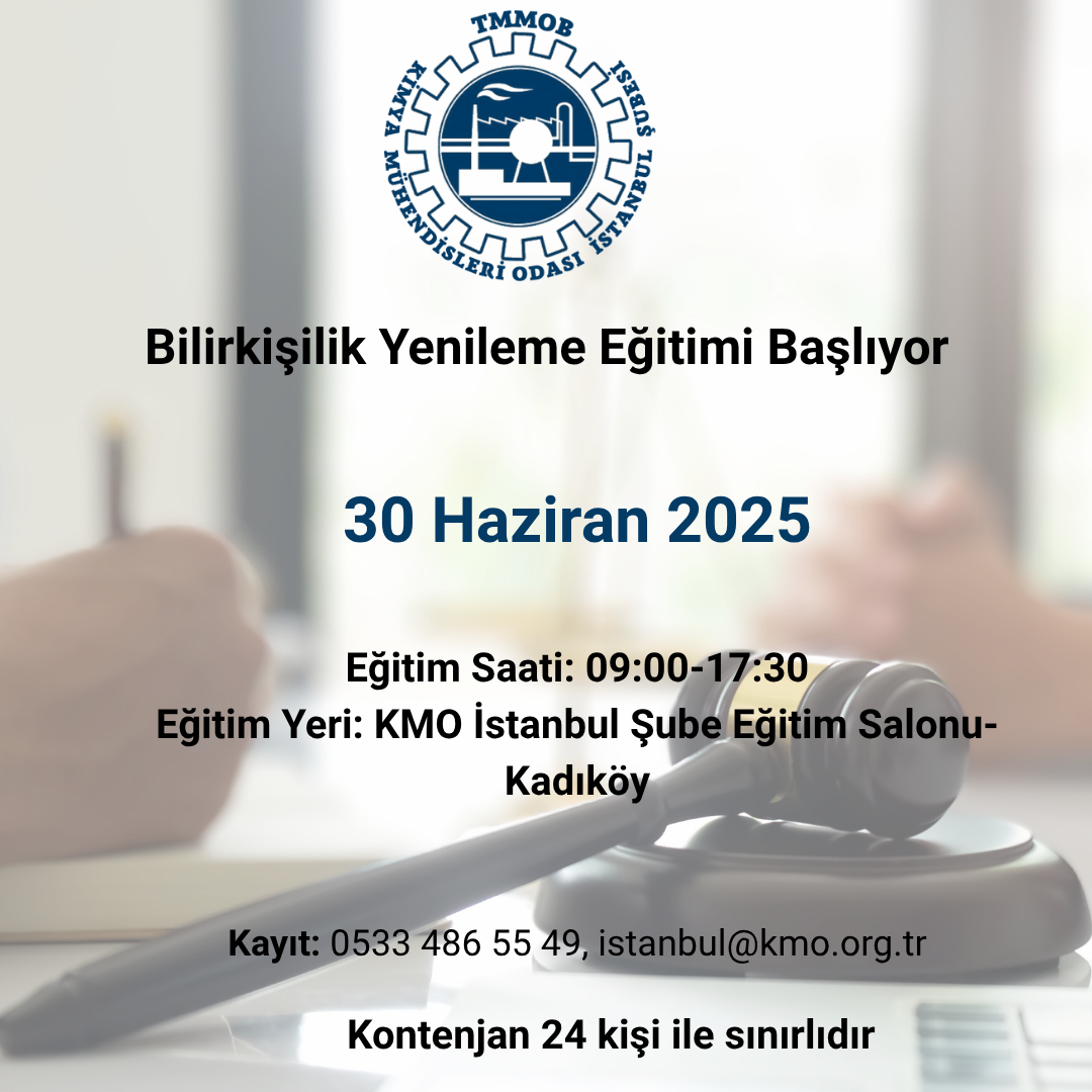 Şubemiz tarafından 30 Haziran 2025 saat 09:00-17:30 Bilirkişilik Yenileme Eğitimi düzenlenecektir.