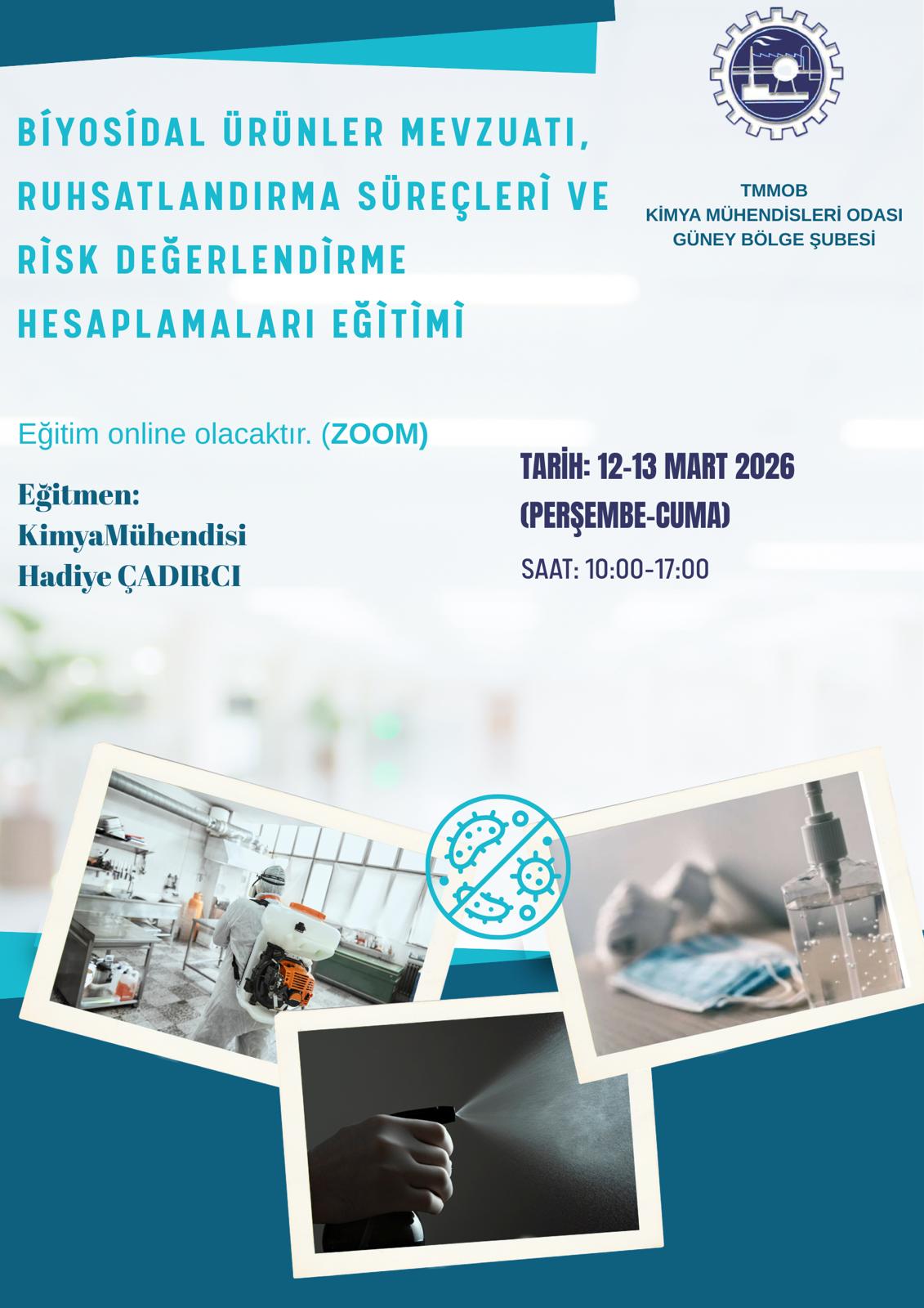 BİYOSİDAL ÜRÜNLER MEVZUATI, RUHSATLANDIRMA SÜREÇLERİ VE RİSK DEĞERLENDİRME HESAPLAMALARI EĞİTİMİ (Online) |