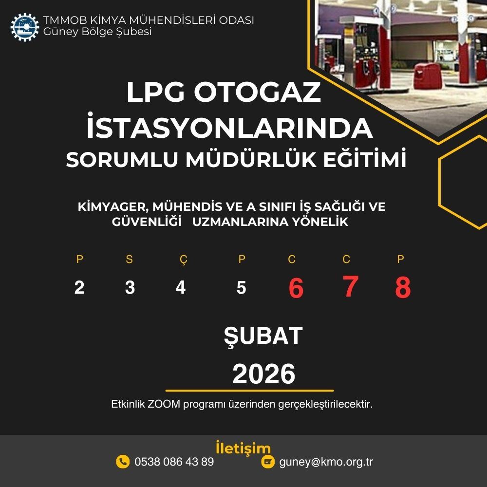 LPG OTOGAZ İSTASYONLARINDA SORUMLU MÜDÜRLÜK EĞİTİMİ - 06.07.08 ŞUBAT 2026 (Mühendisler, Kimyager ve Teknikerler,A Sınıfı İGU)